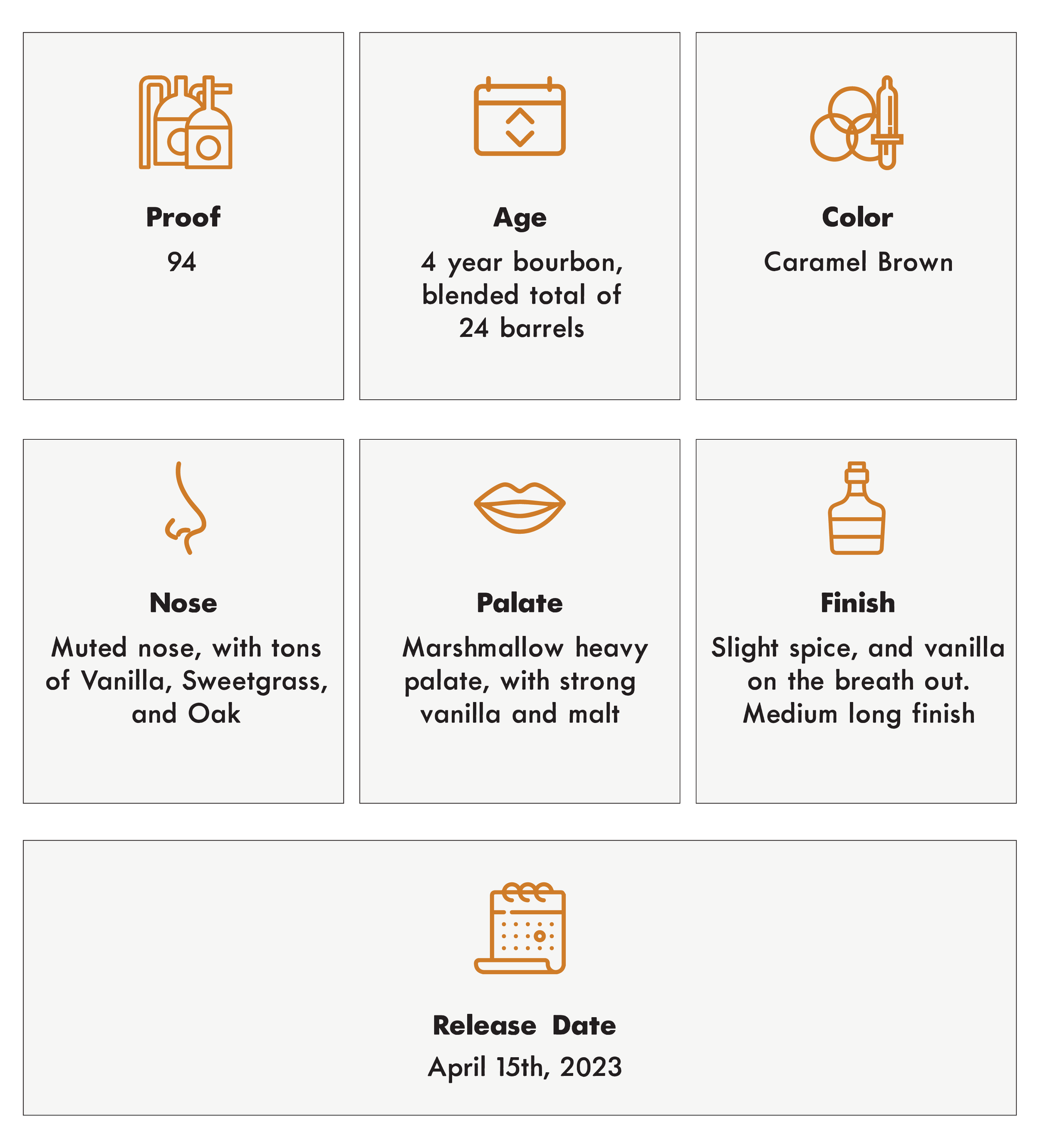 For this release, we didn’t stop there. Instead, we transferred our mature Florida bourbon out of the charred oak barrels and into barrels which have been lightly toasted for a final finishing period. This toasting process brings the wood's natural sugars right to the surface so they can be captured by the bourbon. Just a short stint in a toasted barrel allows our Florida bourbon to adopt a warm character featuring notes of vanilla, marshmallow, and malt. The result is an approachable, delightfully inviting bourbon that we can’t wait to share with you.